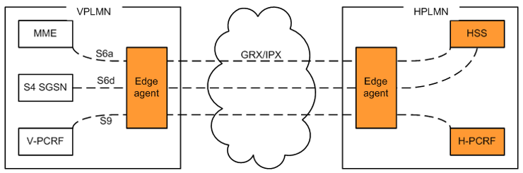 An edge agent is a Diameter routing agent (DRA) deployed at the network edge and functions as the DEA. On an IPX network, the DEA must be deployed to support route addressing for Diameter signaling between the visited and home networks.