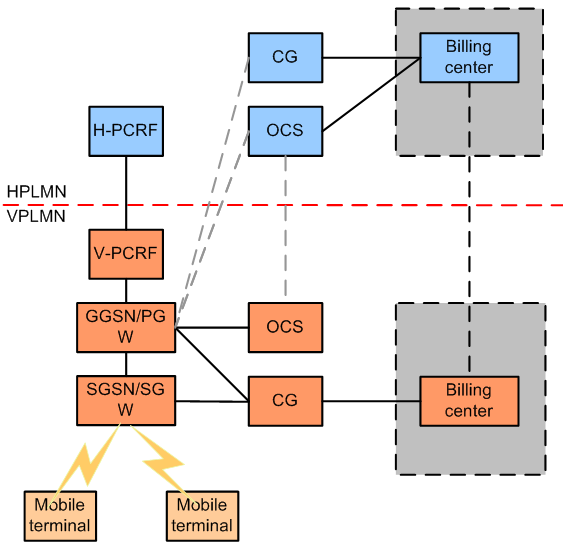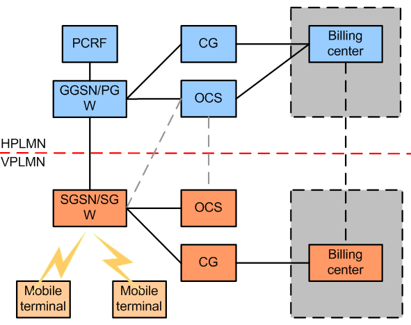 In most cases, the billing center in the home network is not available to NEs in the visited network. Therefore, the NEs in the visited network can implement only offline charging.