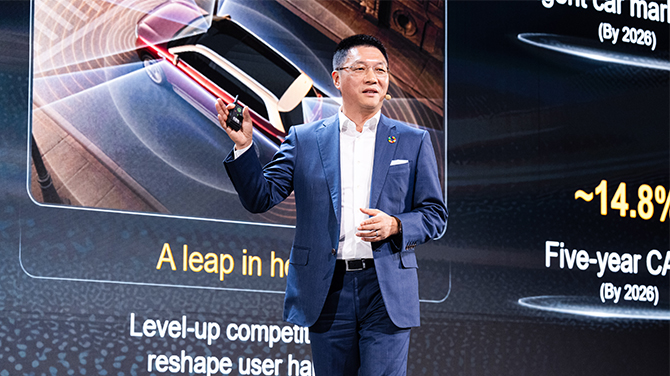 James Chen, President of Huawei Carrier Business, delivering a keynote speech
